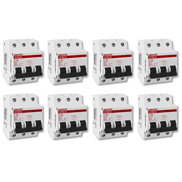 • 1 Kit Disjuntor Mini Tripolar 16A Curva C 6Ka